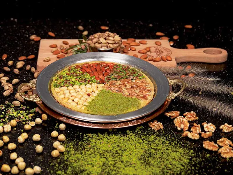 Assorted fillings of cheese, nuts, and spices in crispy kunafa, delicately sweetened.
